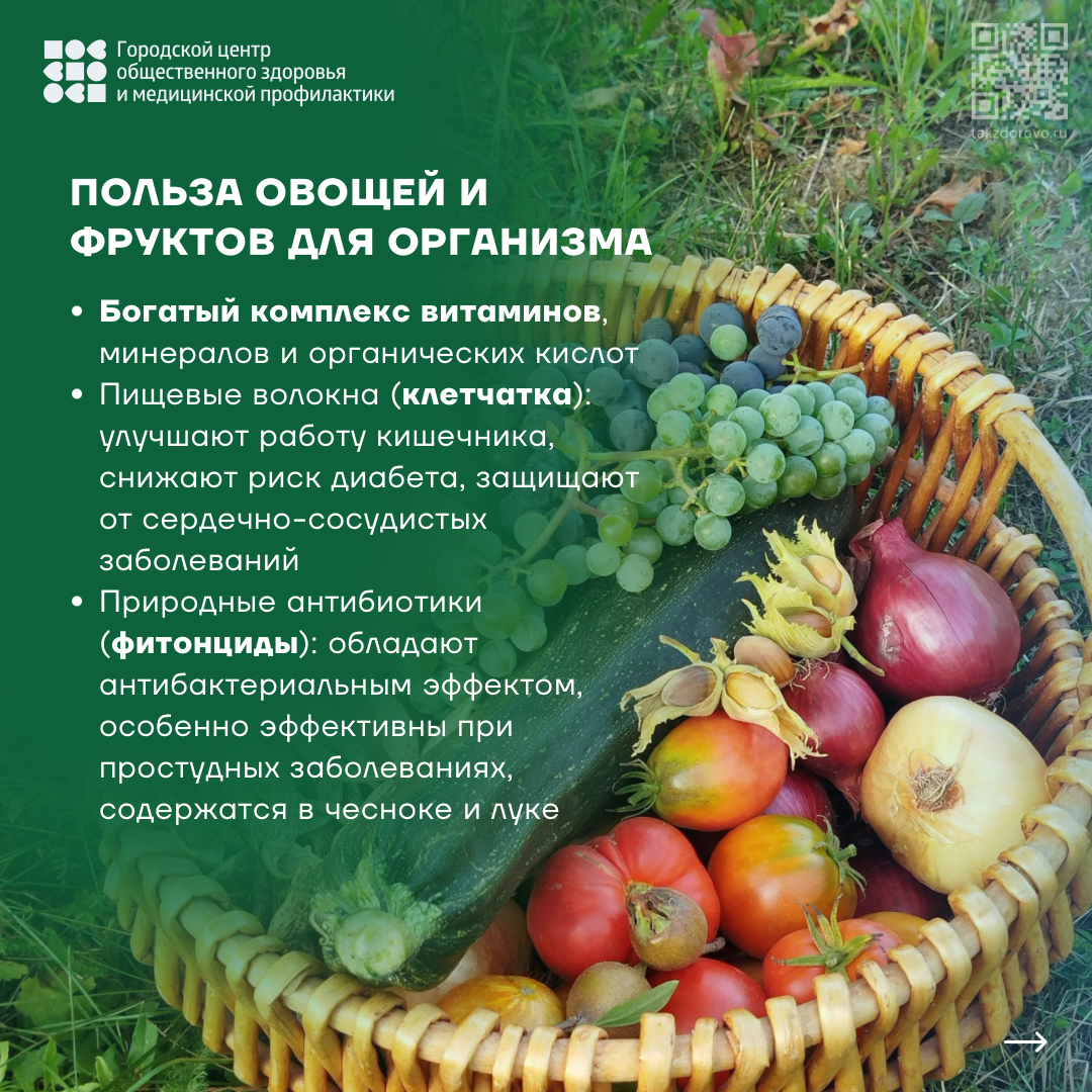 Хочешь быть здоровым? Ешь овощи и фрукты! Опубликовано 21.10.2025 в рубрике Здравоохранение, Информация