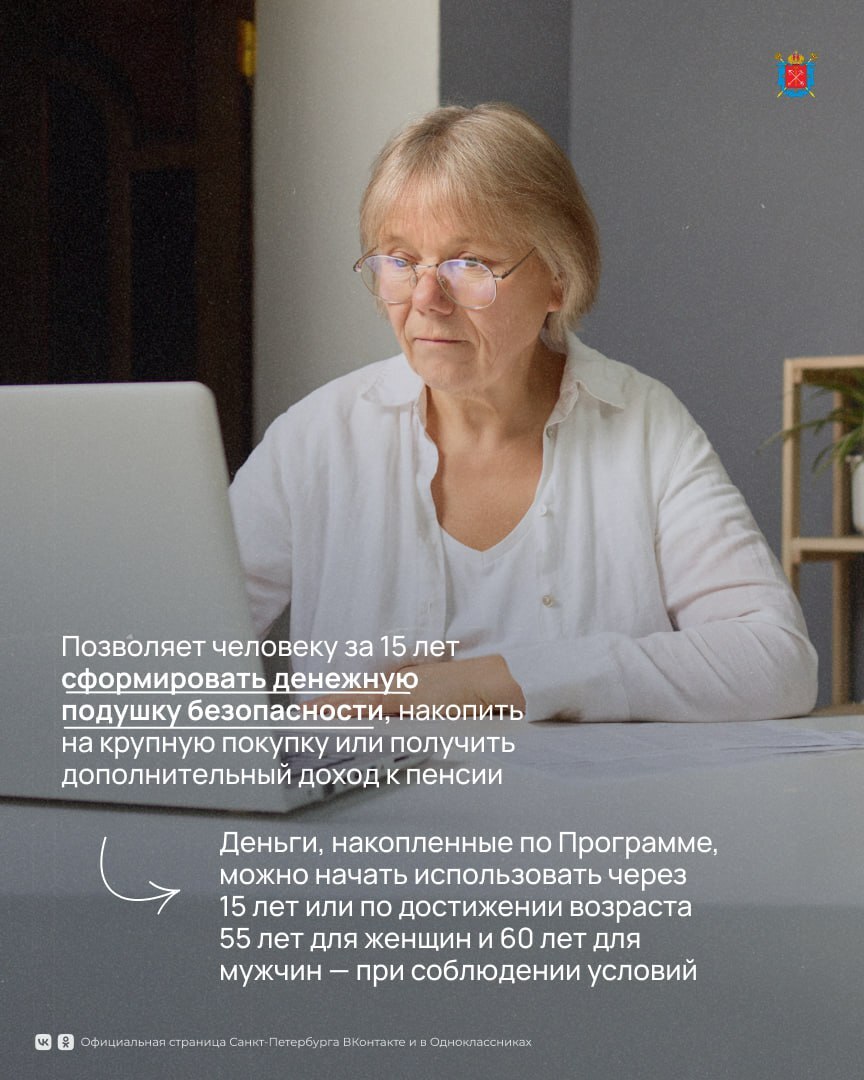 Программа подойдёт тем, кто хочет накопить на крупную покупку, создать финансовую подушку или сформировать дополнительный доход к пенсии. Участник сам выбирает сумму и срок, а государство может добавить до 36 тысяч рублей в год.