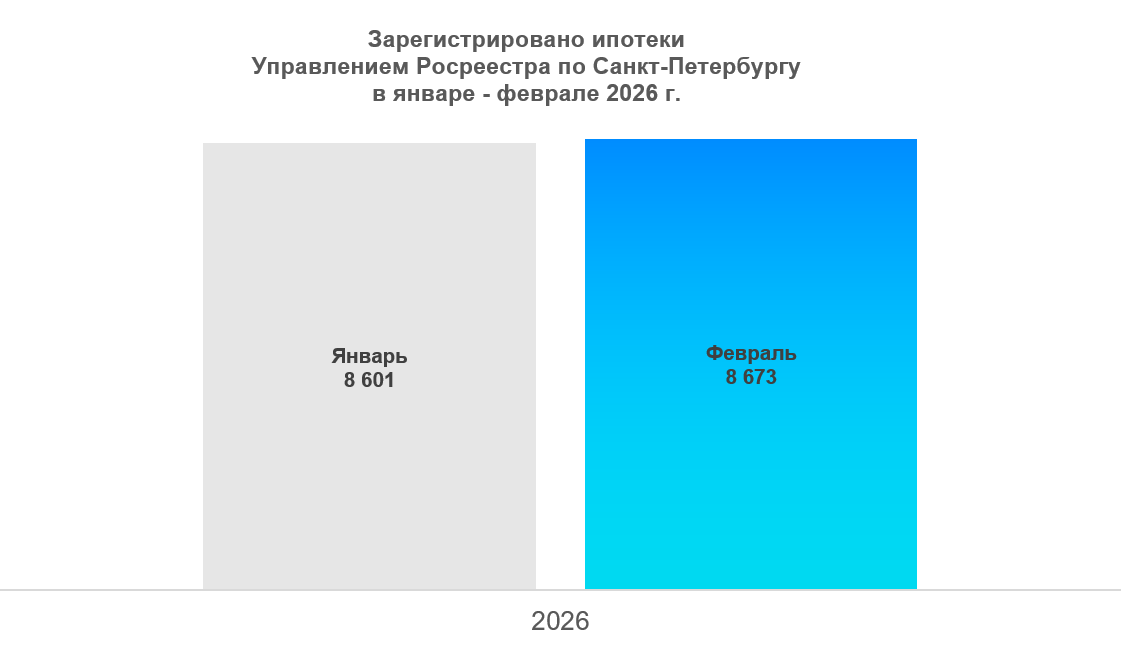 В феврале 2026 года зарегистрировано ипотеки 8 673 (в январе 2026 года – 8601).